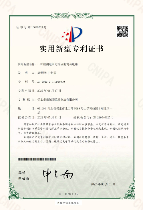 實用新型證書一種檢測電網(wǎng)過零點(diǎn)的簡易電路