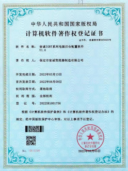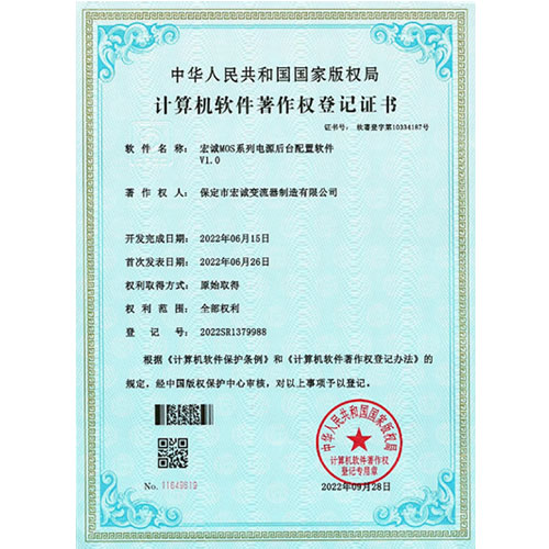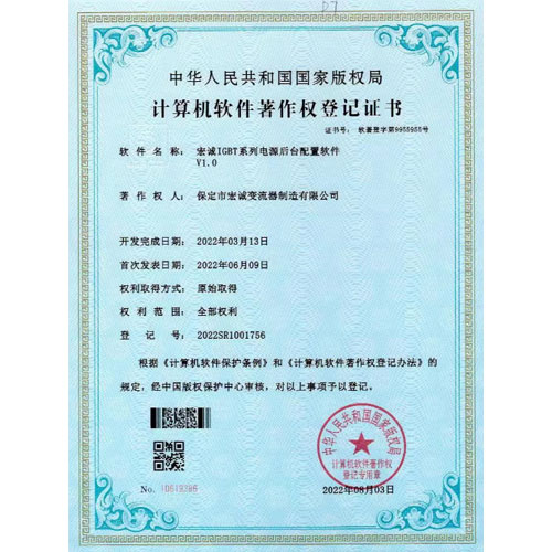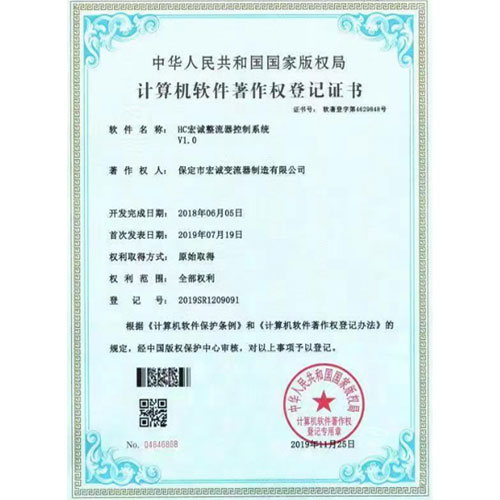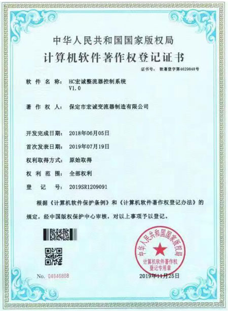 計算機(jī)軟件著作權(quán)登記證書--HC宏誠整流器控制系統(tǒng)V1.0