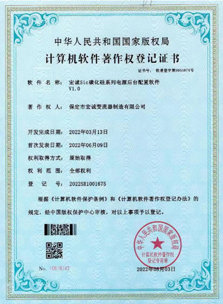 計算機(jī)軟件著作權(quán)登記證書--Sic碳化硅系列電源后臺配置軟件V1.0