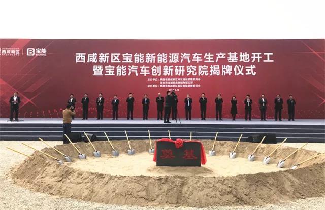 西咸新區(qū)寶能新能源汽車生產(chǎn)基地開工暨寶能汽車創(chuàng)新研究院揭牌儀式在陜西省西咸新區(qū)秦漢新城舉行。該項(xiàng)目總投資約400億元,規(guī)劃產(chǎn)能100萬(wàn)輛(其中一期50萬(wàn)輛)新能源汽車及配套項(xiàng)目,整車和零部件制造產(chǎn)值將超過(guò)千億元。這是寶能在新能源汽車產(chǎn)業(yè)的重大布局,也是西咸新區(qū)首個(gè)開工建設(shè)的千億級(jí)工業(yè)產(chǎn)業(yè)項(xiàng)目。
