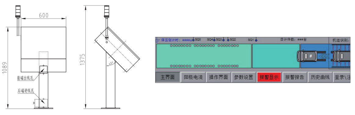 | ■ 采用工業(yè)級一體化控制站,可實時監(jiān)控分布式電源運行狀態(tài),遠(yuǎn)程設(shè)定參數(shù); ■ 實時動態(tài)顯示電壓、電流曲線以及電泳工件的動畫示意; ■ 為有效防止誤操作,所有參數(shù)設(shè)置具備權(quán)限保護; |